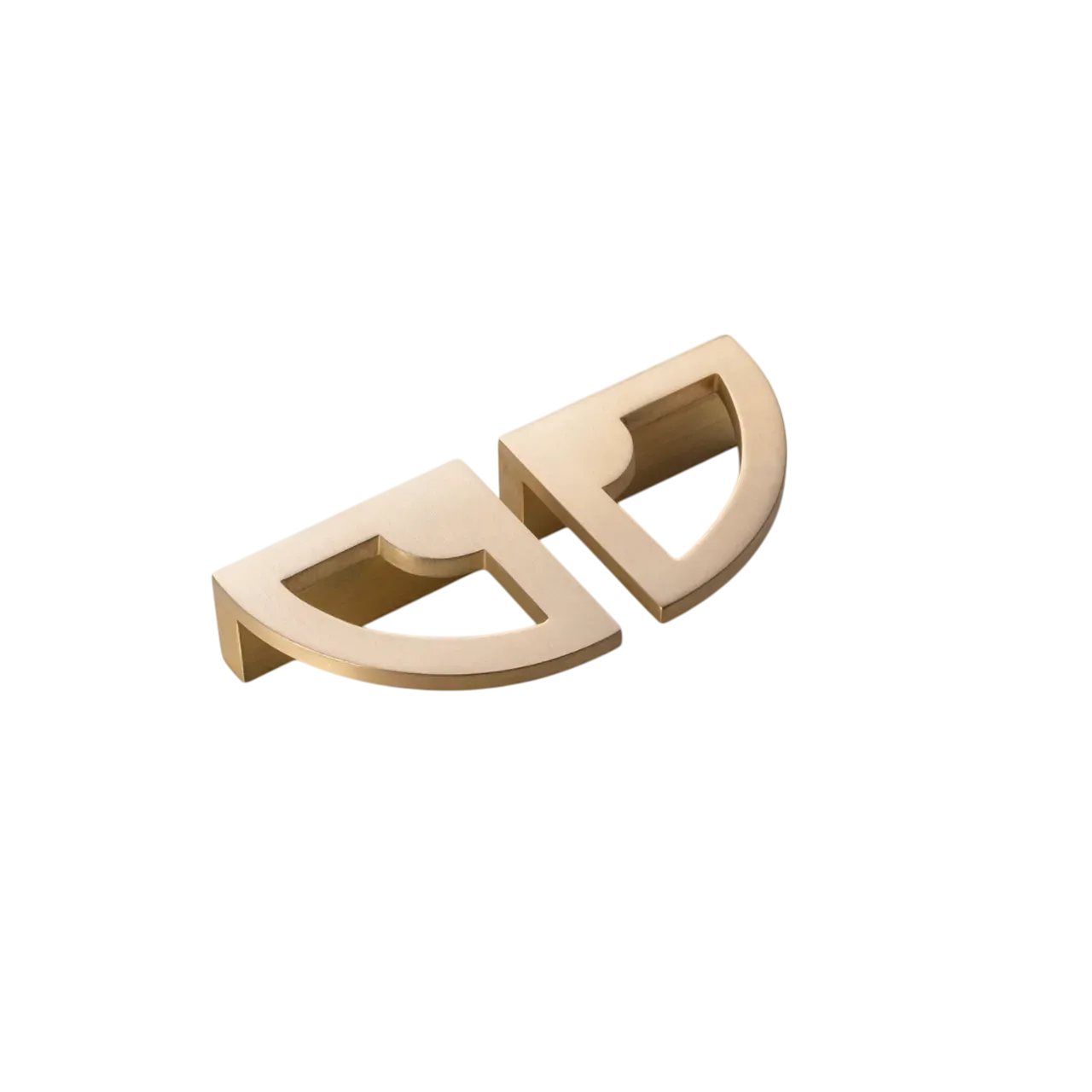 Élégante et résolument graphique, la Poignée Lyra n°7 s’inspire du design rétro-chic des Années Folles, alliant lignes audacieuses et raffinement subtil. Son format en quart de cercle plein lui confère une présence affirmée, idéale pour structurer un meuble avec caractère et modernité.