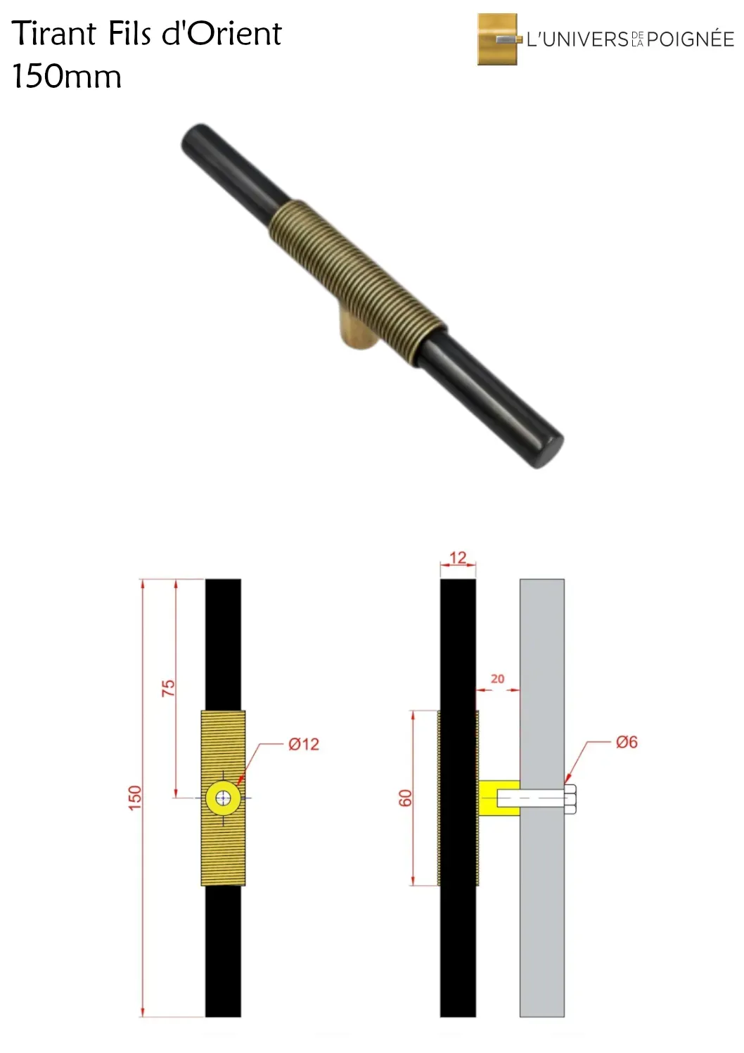 Élégance et simplicité se rencontrent dans les tirants Fils d'Orient, des poignées de meubles à la fois pratiques et décoratifs. Conçus en laiton massif, ces tirants se déclinent en trois tailles (300, 150 et 80 mm), offrant une solution adaptée à tous vos meubles, qu'il s'agisse de grands buffets ou de petits tiroirs.