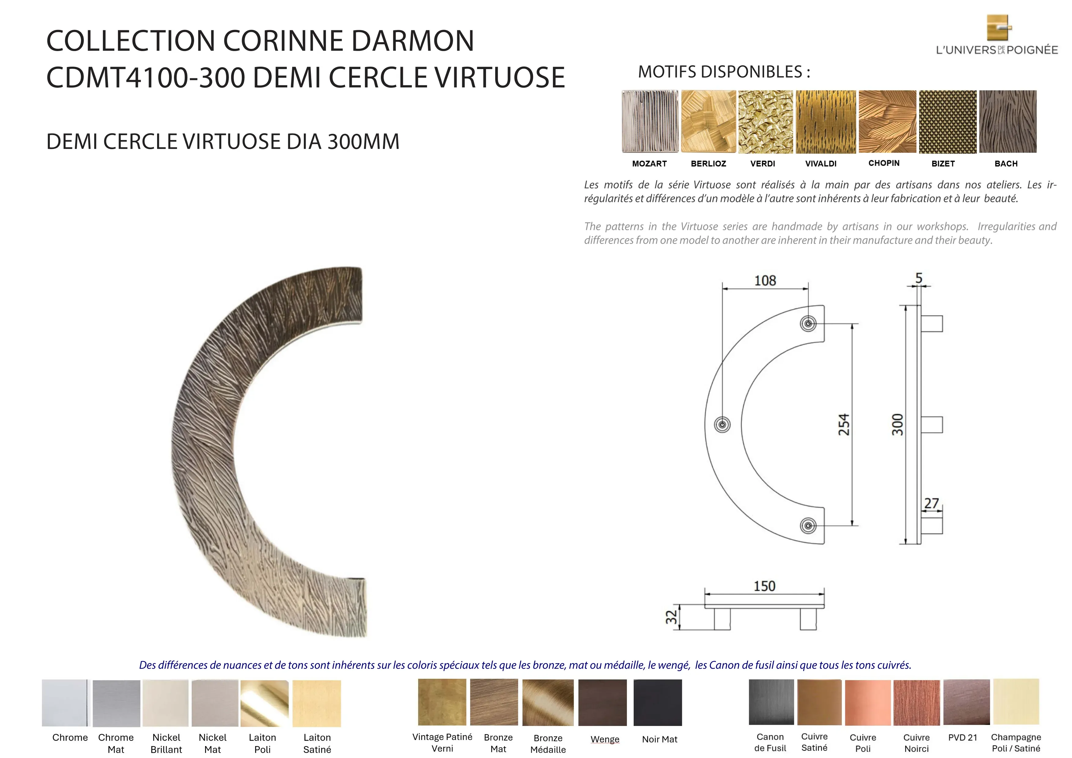 Poignée de tirage 1/2 cercle VIRTUOSE 300mm