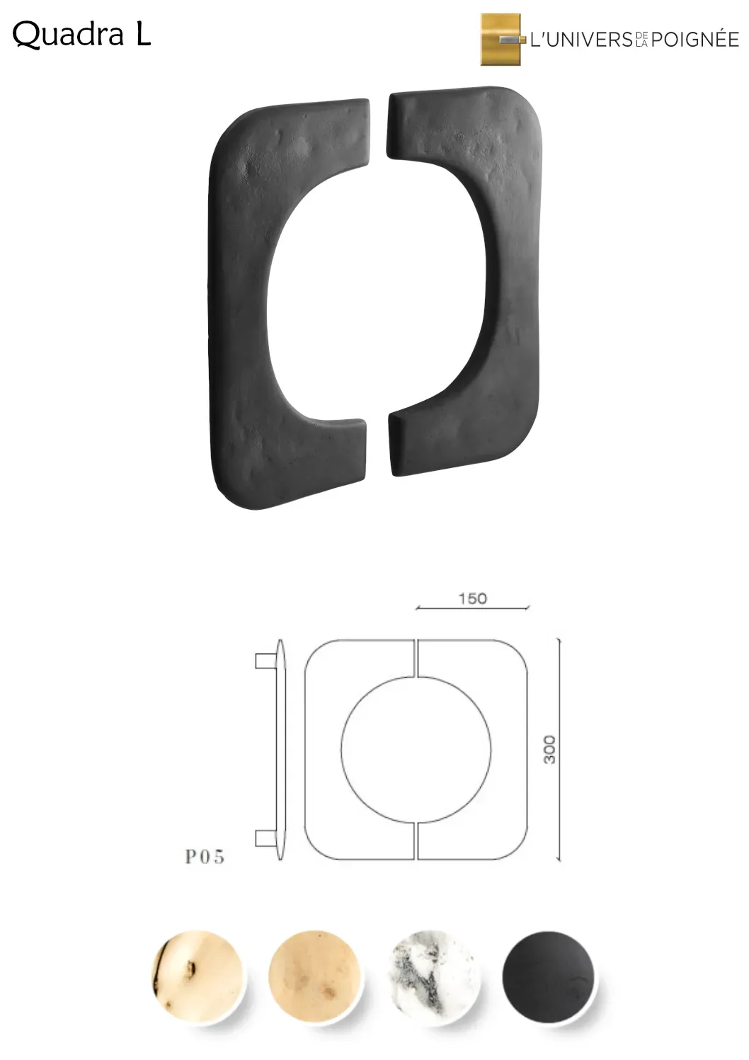 Poignée de tirage Quadra L – 300x150 mm, design contemporain