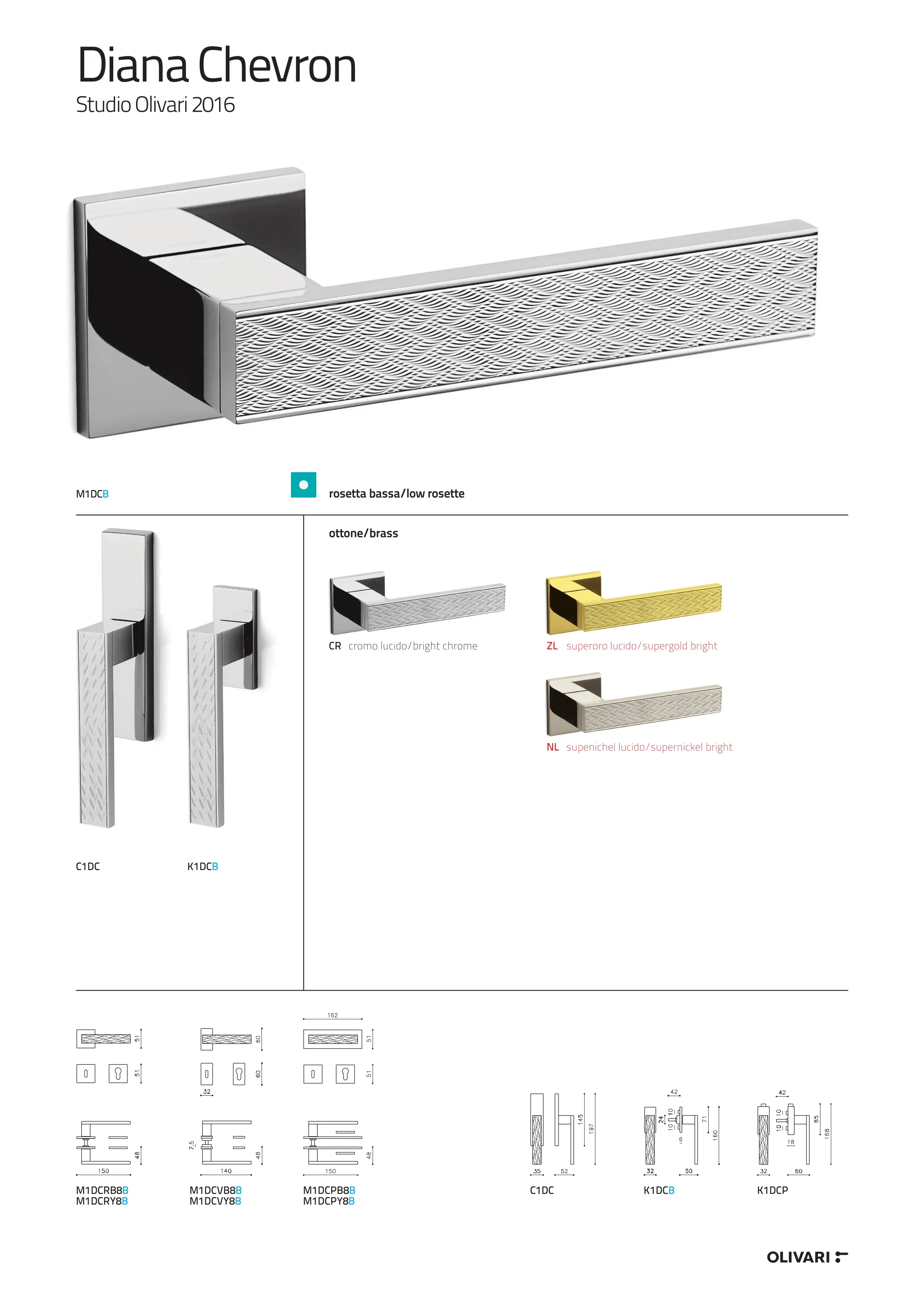 Poignée de porte DIANA CHEVRON rosace carrée