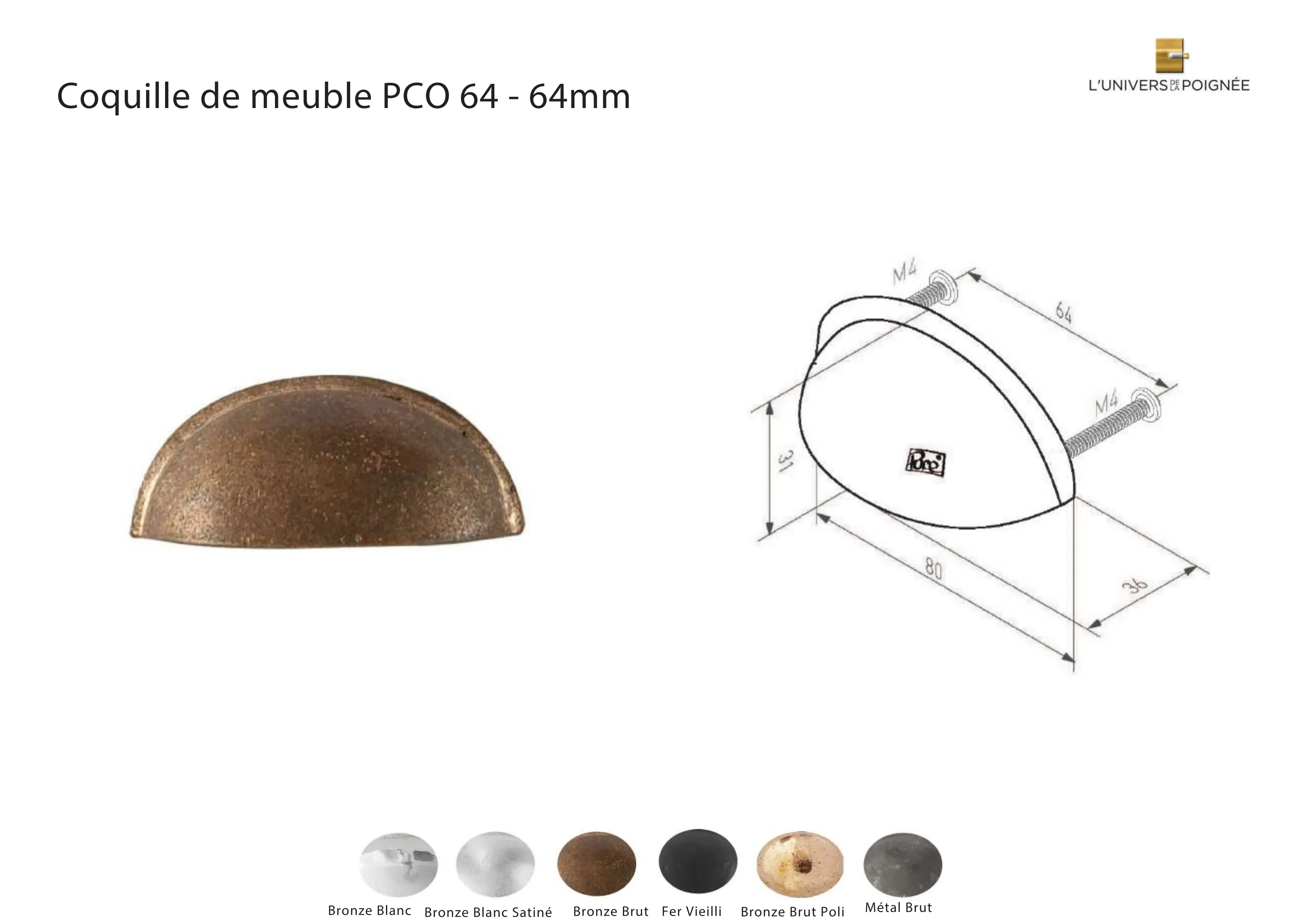 Poignée de meuble Coquille - 64mm